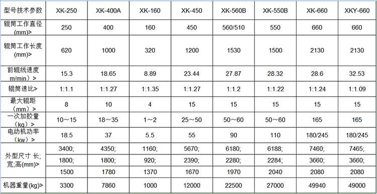 開(kāi)放式煉膠機(jī)技術(shù)參數(shù):
